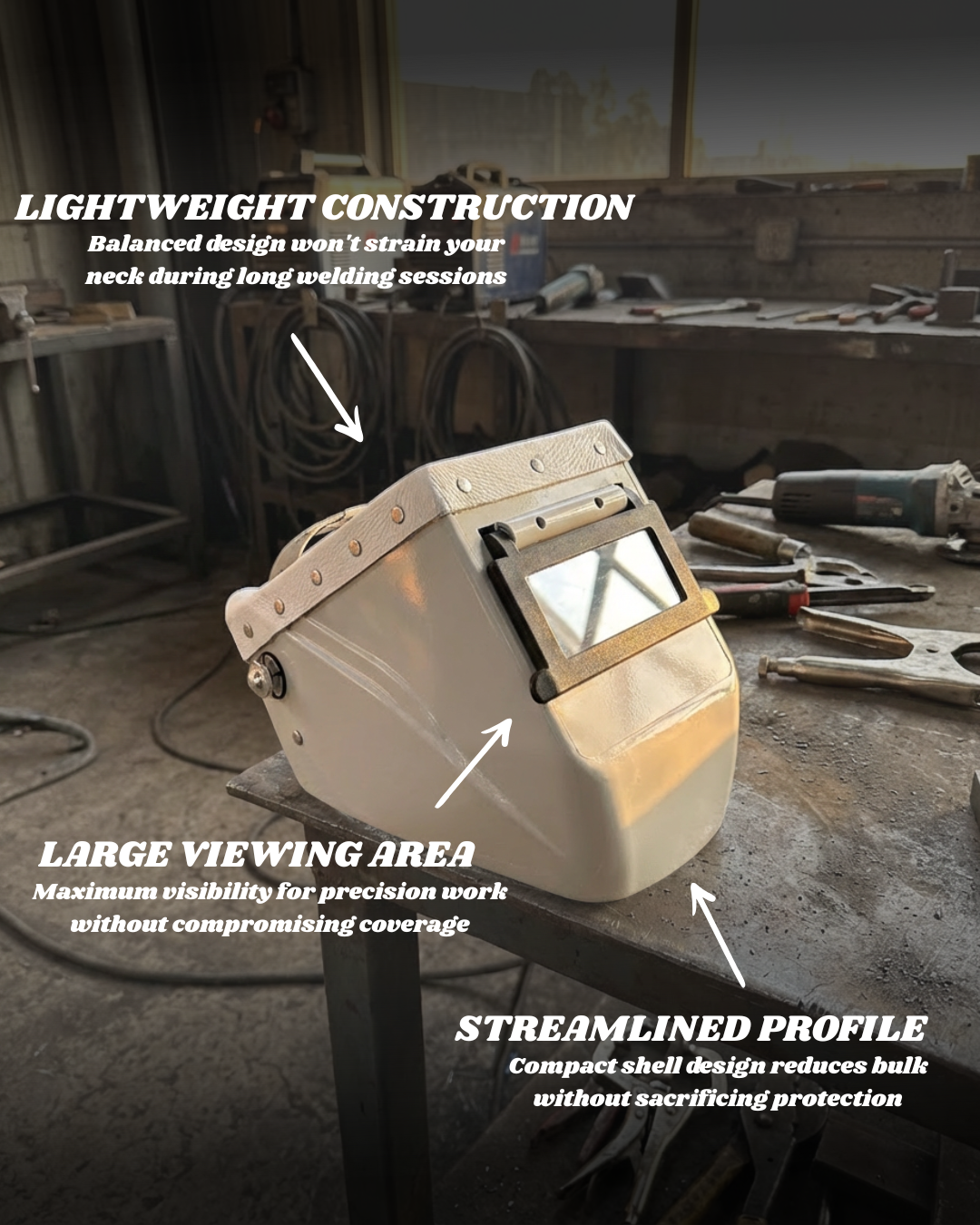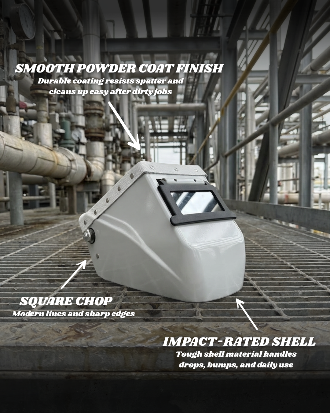 This isn't some redesign for the sake of it. This is welders fixing what welders always knew could be better. Clean white finish ready to customize. Lightweight enough for long shifts. Tough enough to take the abuse.