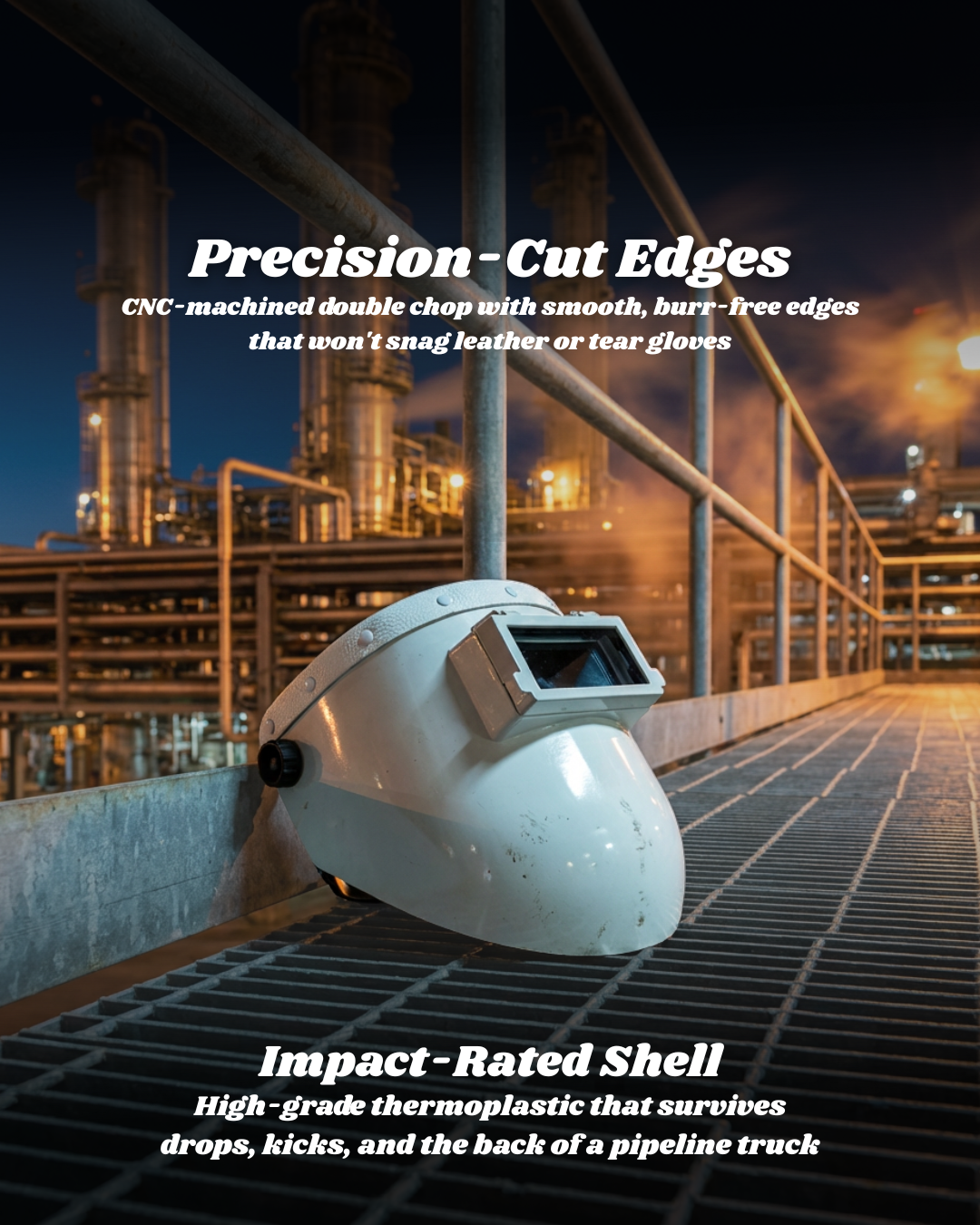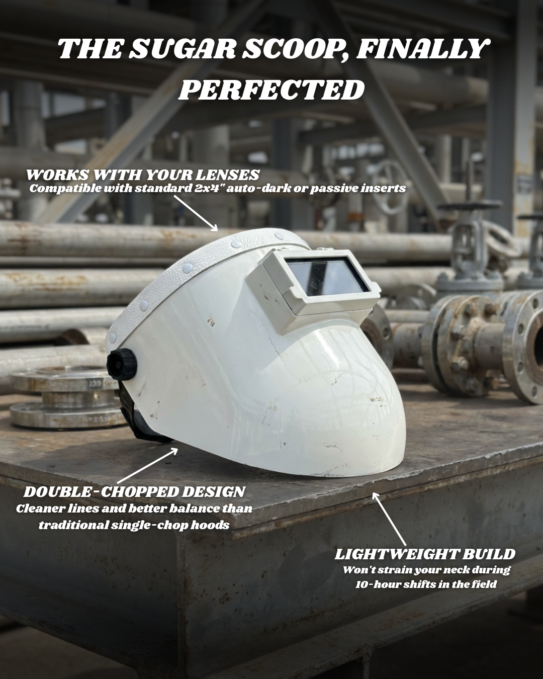 This isn't some redesign for the sake of it. This is welders fixing what welders always knew could be better. Clean white finish ready to customize. Lightweight enough for long shifts. Tough enough to take the abuse.